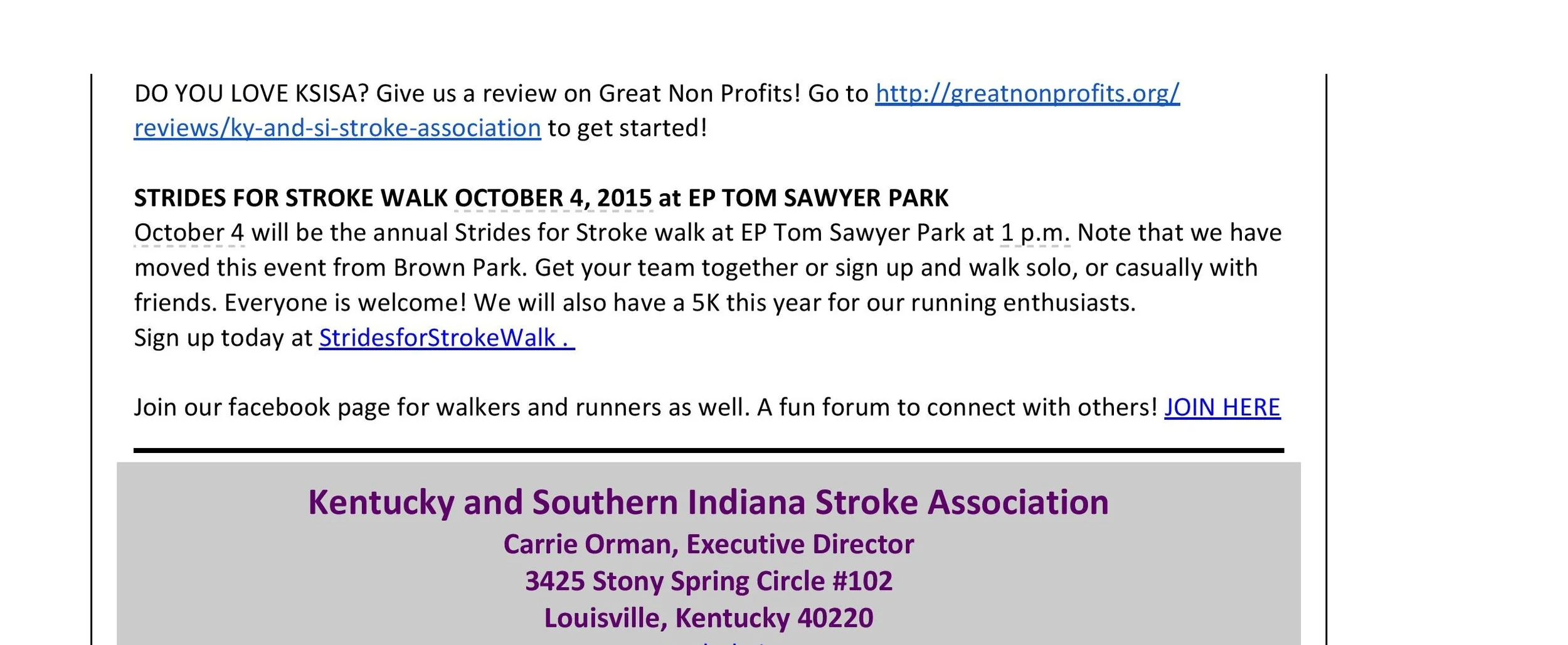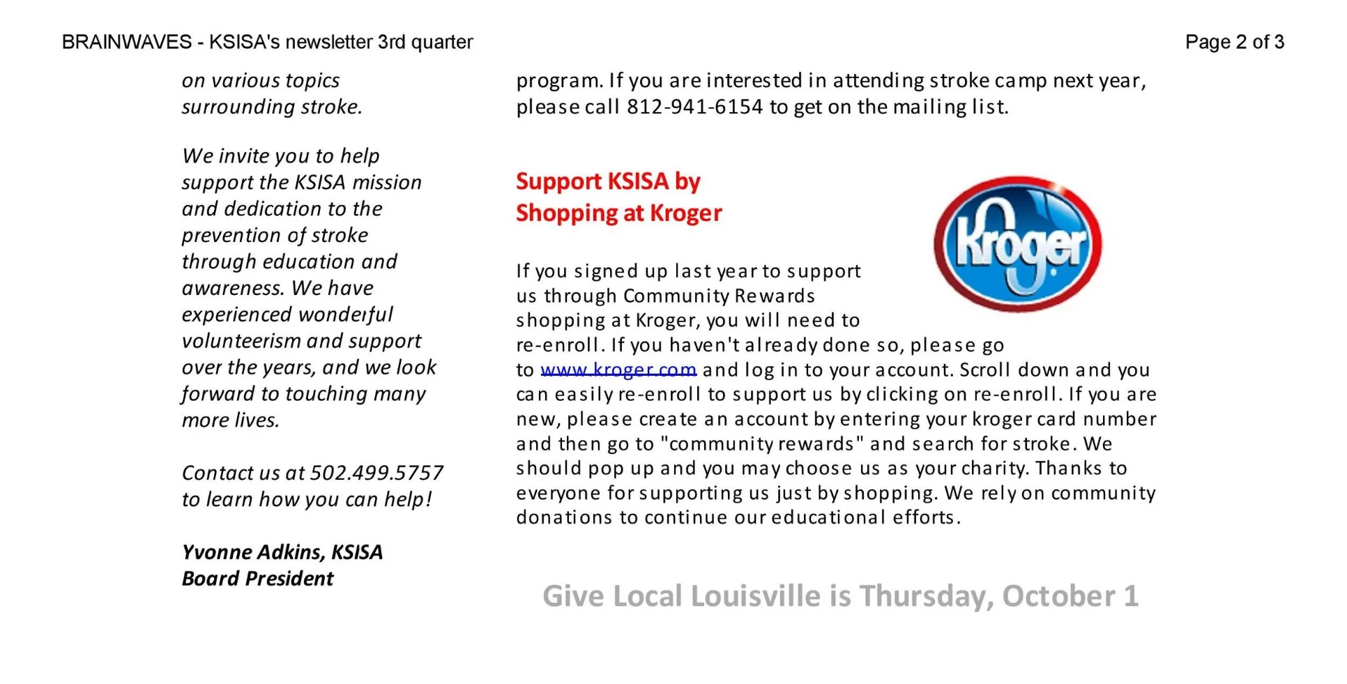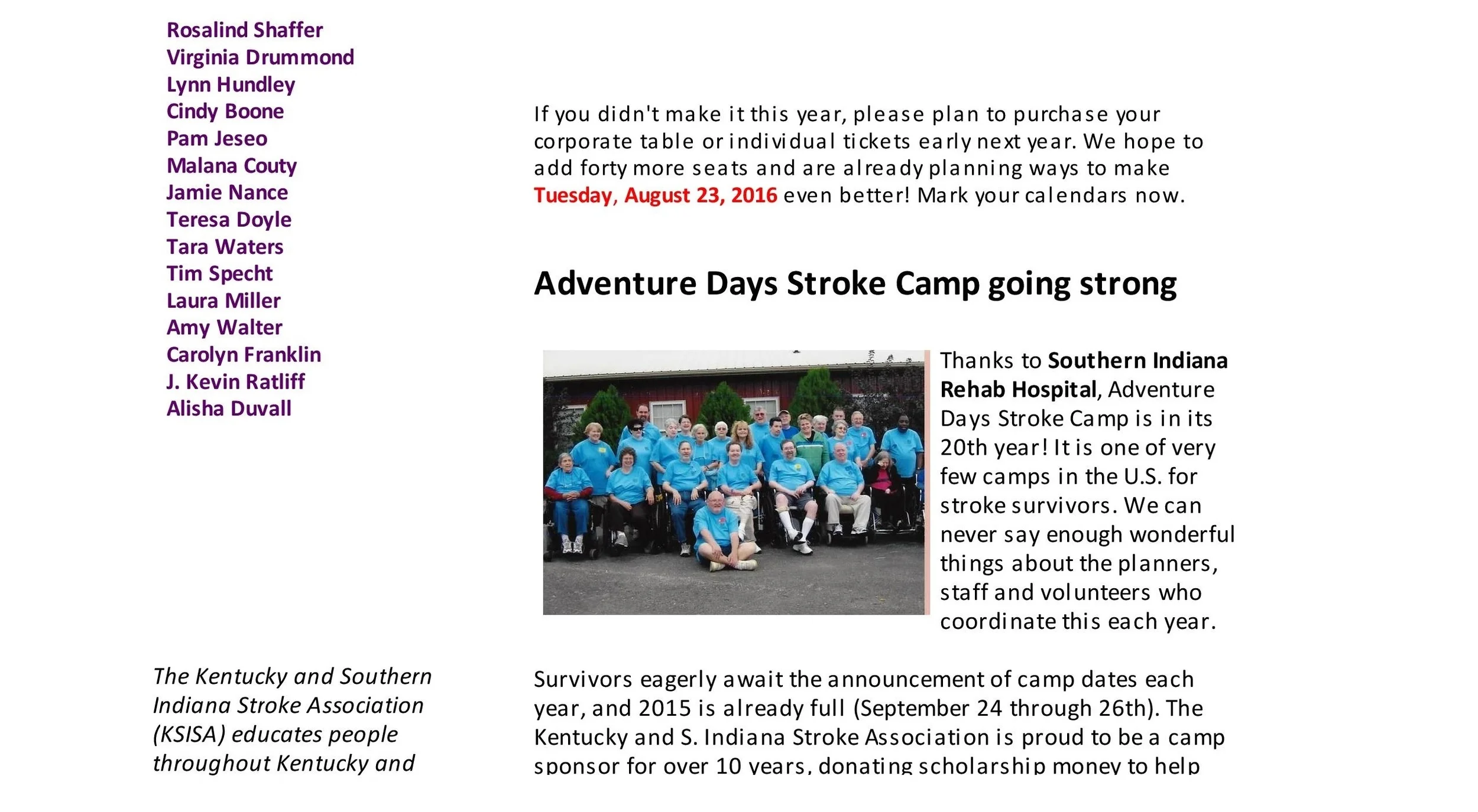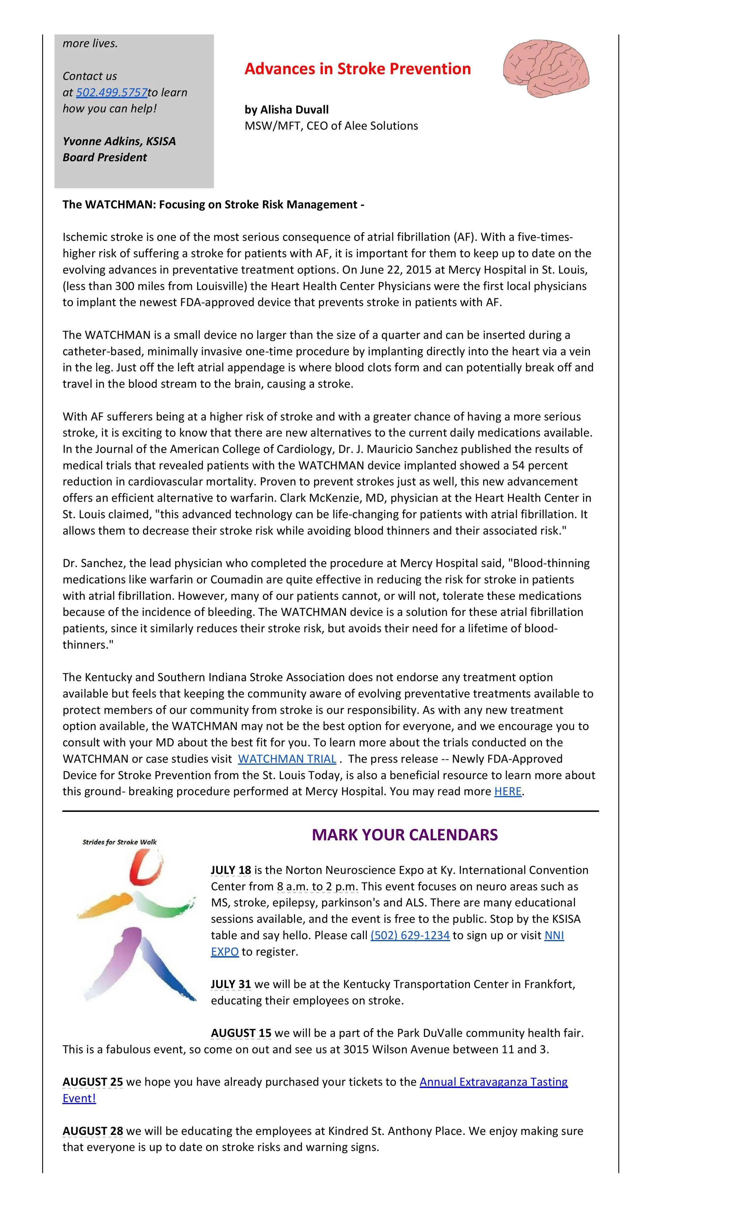 Kentucky & Southern Indiana Stroke Association Newsletter